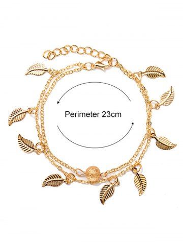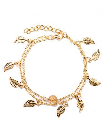 Bracelet de Cheville de Plage Feuille Charmant à Double Couches - D'or - Or