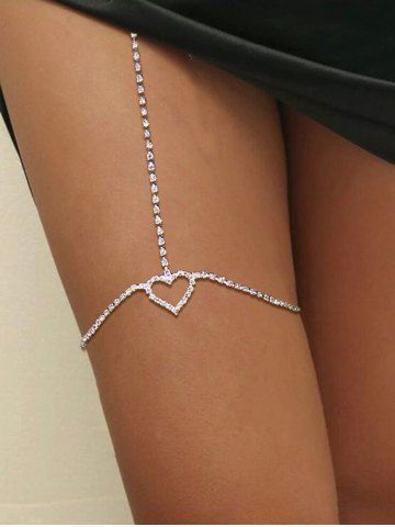 Chaîne de Cuisse Décorée de Cœur avec Strass - Argent - Argent