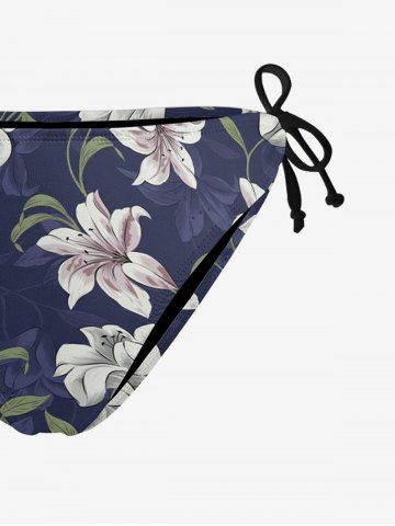 Flower Leaf Branch Print Hawaii Plunging Halter Backless Bikini Set - Cadetblue - S