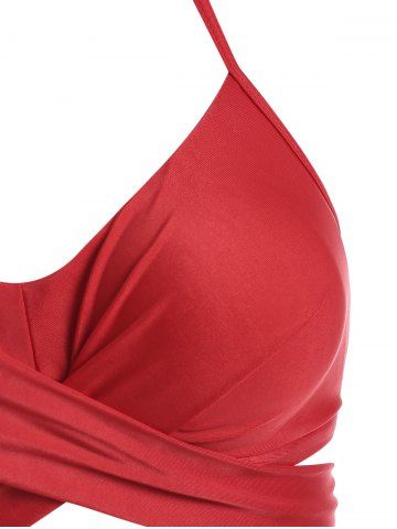 Maillot de Bain Bikini Croisé Ananas Fleur et Oiseau à Col Halter - Rouge - Rouge