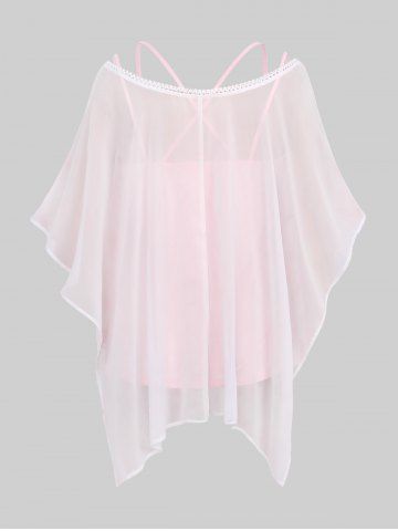 Chemisier Asymétrique Croisé Fleur Imprimée à Bretelle en Dentelle Transparente et de Haut - Rose Clair - Rose Léger