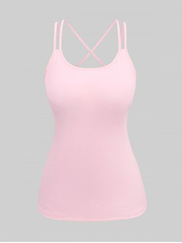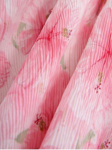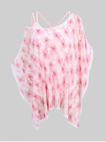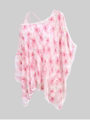 Chemisier Asymétrique Croisé Fleur Imprimée à Bretelle en Dentelle Transparente et de Haut - Rose Clair - Rose Léger