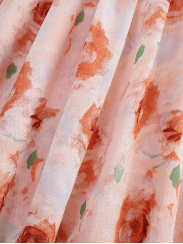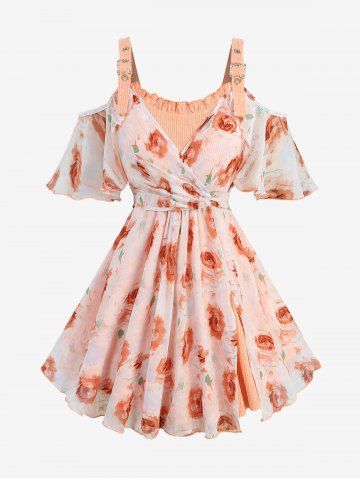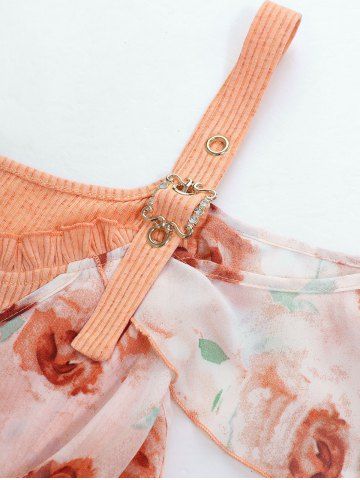 Débardeur 2 en 1 grande taille à volants et imprimé de roses, ourlet tulipe fendu, épaules dénudées - Orange - Orange