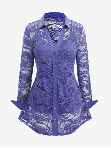 C*****l5Plus Size Lace Flower Sheer Blouse and Cami Top SetColor: BLACK Size: 1X | US 14-16Such a great top! I like that the cami isn't attached so I have options to layer it over several different colours to keep it interesting. Very happy with the quality of the material, it's not a delicate lace and feels really well made.