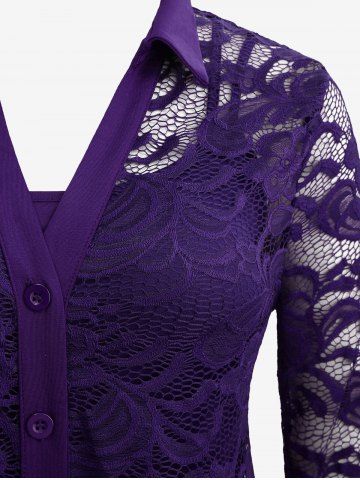 Blouses > Ensemble de Chemisier Fleur en Dentelle Transparente de Grande Taille avec Haut à Bretelle