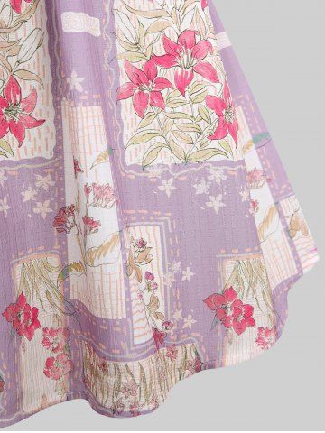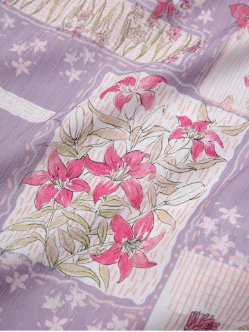Ensemble de Haut Court Feuille Fleur Imprimée en Résille de Grande Taille à Volants et de Haut Court - Violet Clair - Violet Clair