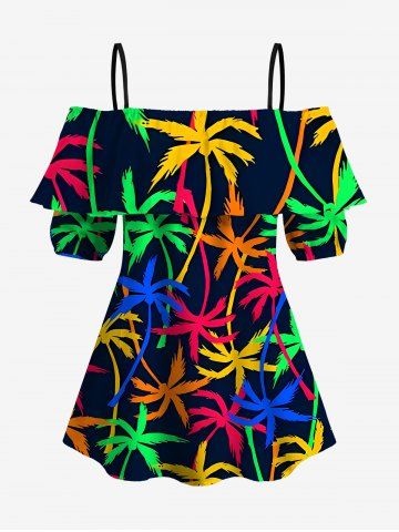 Blouses Graphiques > Plus Size Colorful Coconut Tree Print Hawaii Cold Shoulder Ruffles Blouse