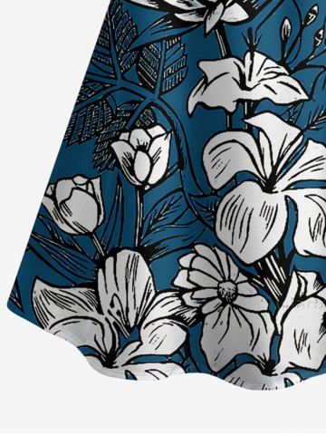 Blouses Graphiques > Plus Size Flowers Leaf Print Cold Shoulder Ruffles Cover Hawaii Blouse