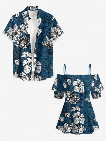 Blouses Graphiques > Plus Size Flowers Leaf Print Cold Shoulder Ruffles Cover Hawaii Blouse
