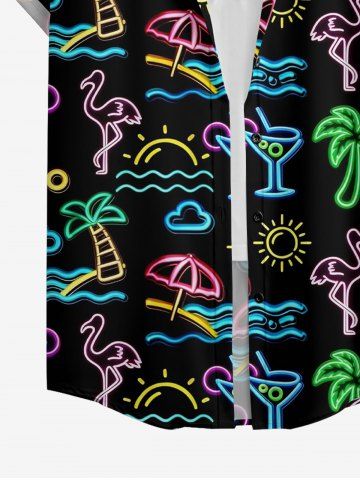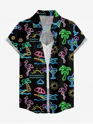 Women's Coconut Tree Flamingo Juice Print Hawaii Shirt - Noir - Noir