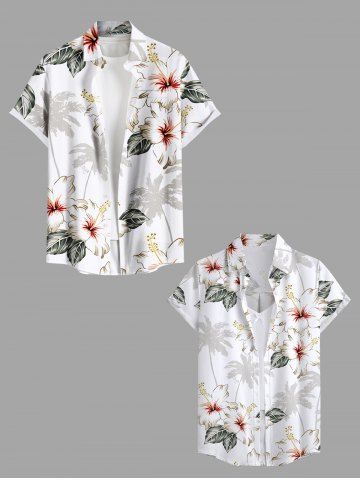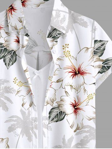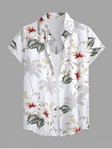 Women's Coconut Tree Hibiscus Flower Leaf Print Hawaii Shirt - Blanc - Blanc