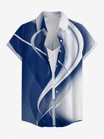 Women's Ombre Curve Print Hawaii Button Shirt - Bleu Profond - M