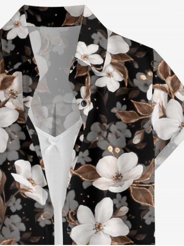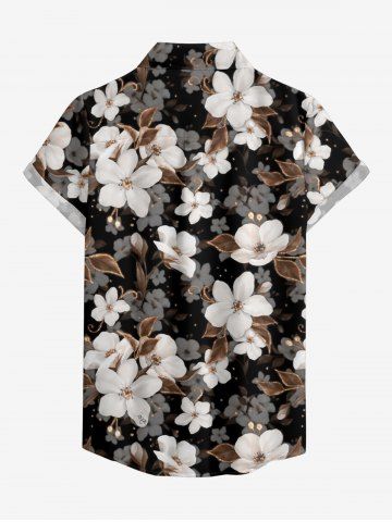 Women's Ombre Flower Leaf Print Hawaii Shirt - Café Profond - S