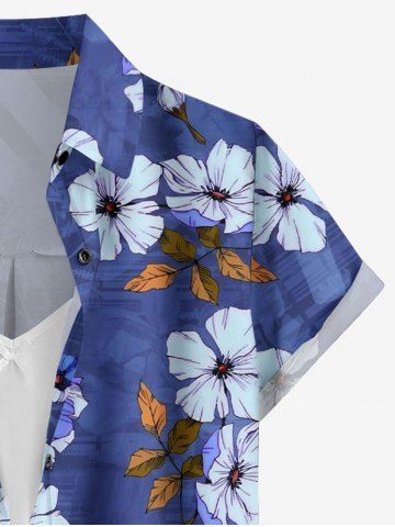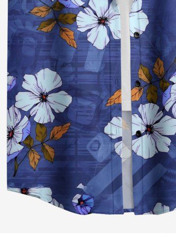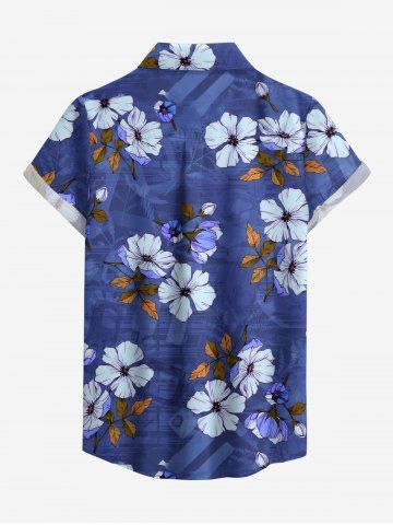 Flower Leaf Branch Print Hawaii Women Shirt - Bleu Profond - S