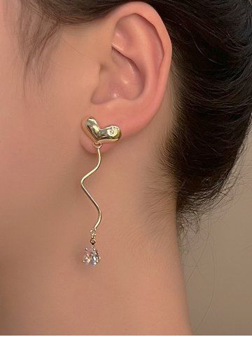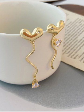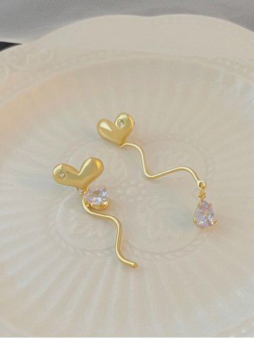 Boucles D'Oreille Asymétriques Décorées de Cœur avec Strass - D'or - Or
