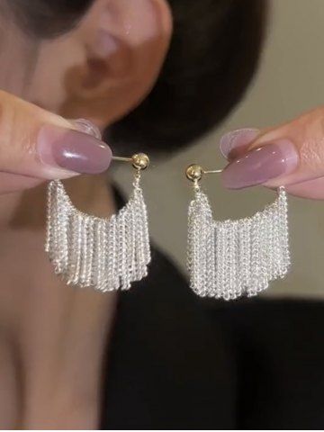 Boucles D'Oreilles Chaîne avec Frange - Argent - Argent