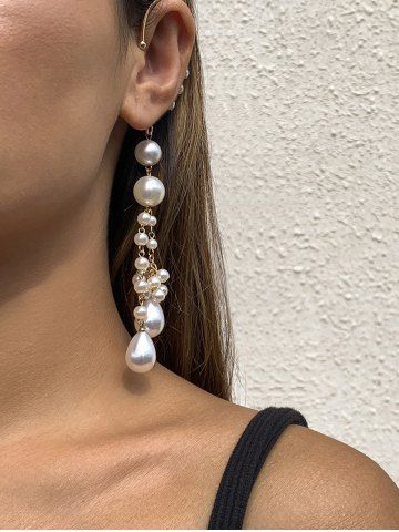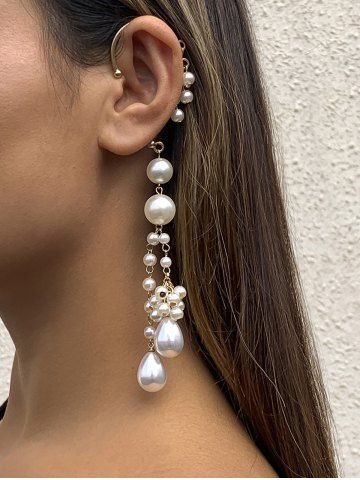 Boucles D'oreilles de Fausses Perles avec Cordelières - Blanc - Blanc