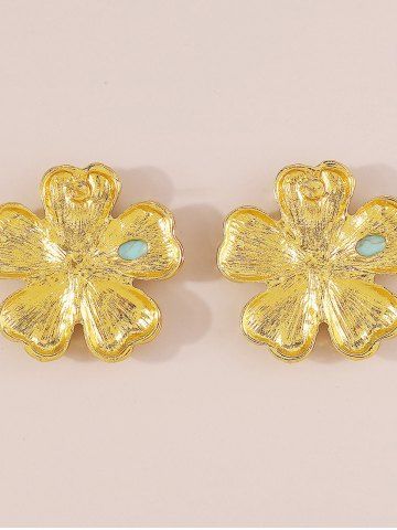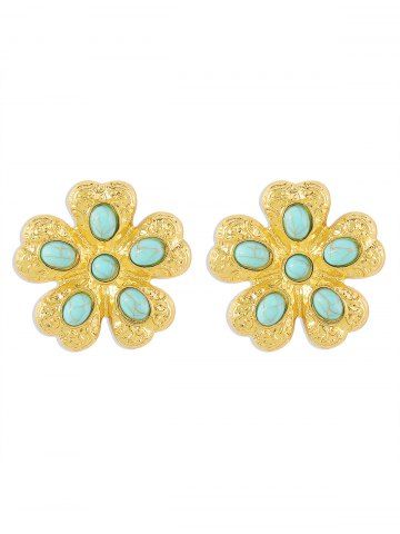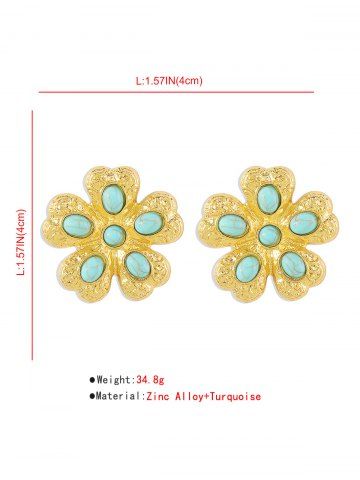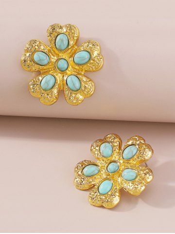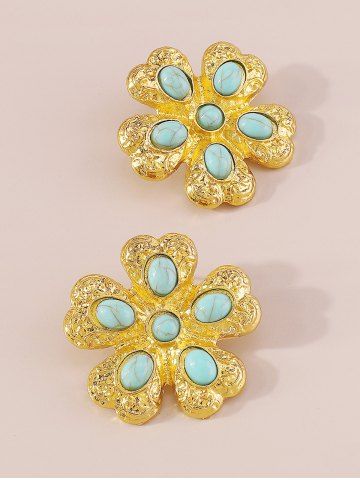 Boucles D'Oreilles Fleuries en Turquoise - D'or - Or