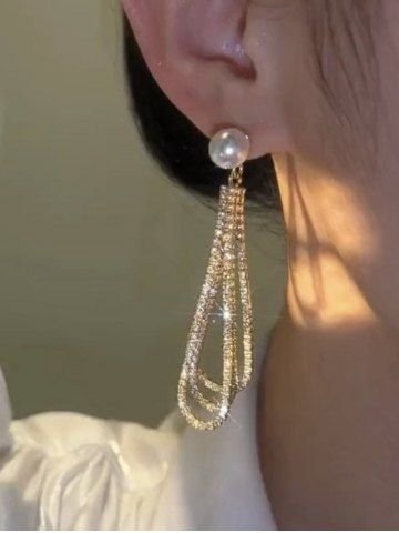 Boucles D'oreilles > Boucles D'Oreilles Longues Ornées de Perles et Diamants Fantaisies avec Pompons