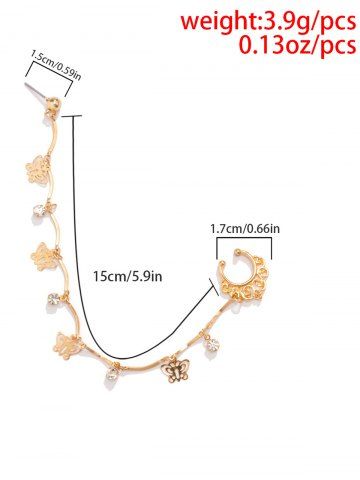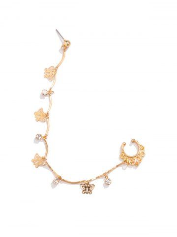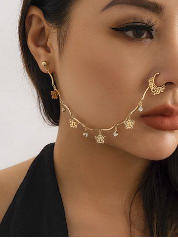 Boucles D'Oreilles Motif Adorable Papillon à Chaîne de Nez en Strass Style Punk - D'or - Or