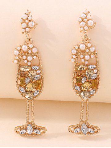 Boucles D'Oreilles Ornées de Strass et Perles Artificielles - D'or - Or