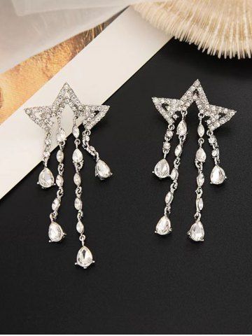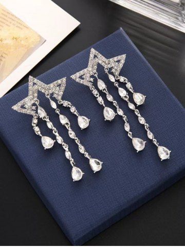 Boucles D'Oreilles Pendantes en Forme D'Etoile avec Pompon - Argent - Argent