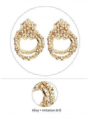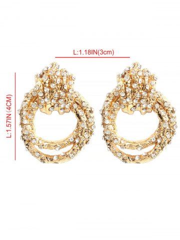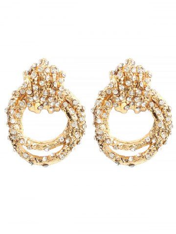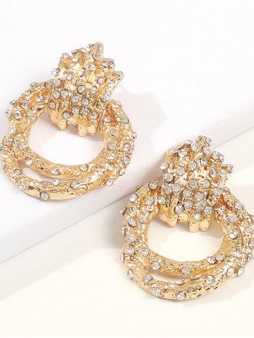 Boucles D'Oreilles Pendantes Motif Double Cercles et Strass - D'or - Or