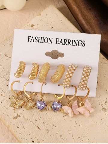 6 Pièces Boucles D'Oreilles Pendantes Papillon Cœur en Fausse Perle - D'or - Or