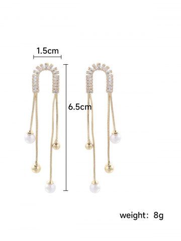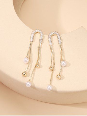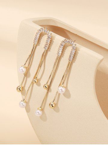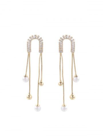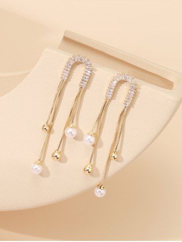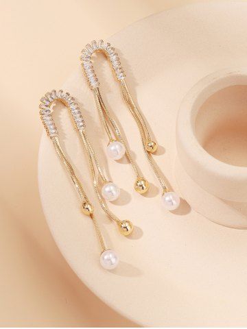 Boucles D'oreilles Pendantes Vintages Frangées en Perle Fausse - D'or - Or