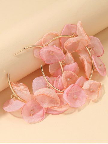 Boucles D'Oreilles Pétale en Mousseline de Soie - Rose Clair - Rose Léger