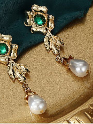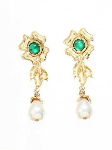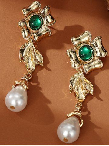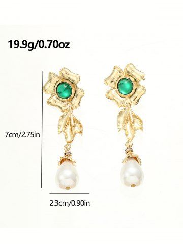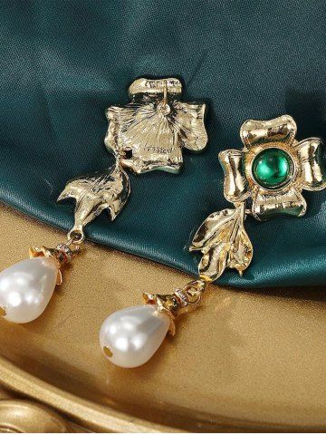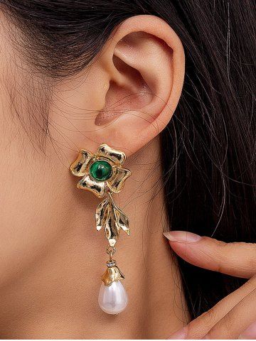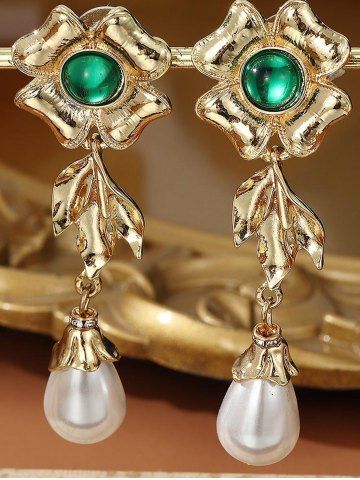 Boucles D'Oreilles Vintage Pendantes Fleuries en Fausse Perle - D'or - Or
