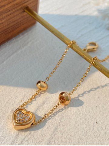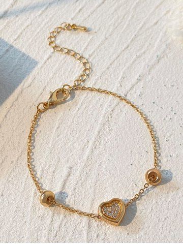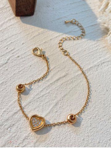 Bracelet en Forme de Cœur en Strass pour la Saint-Valentin - D'or - Or