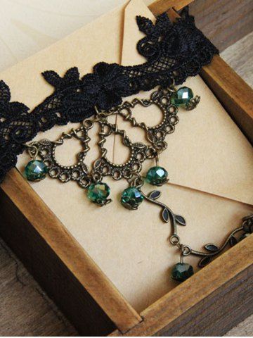 Bracelet Vintage Elégant Décoré de Cristal Rose en Dentelle - Vert Profond
