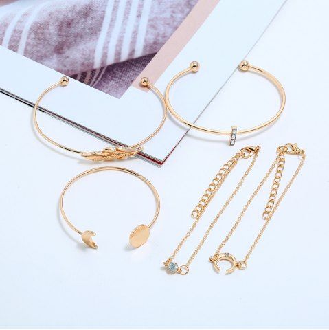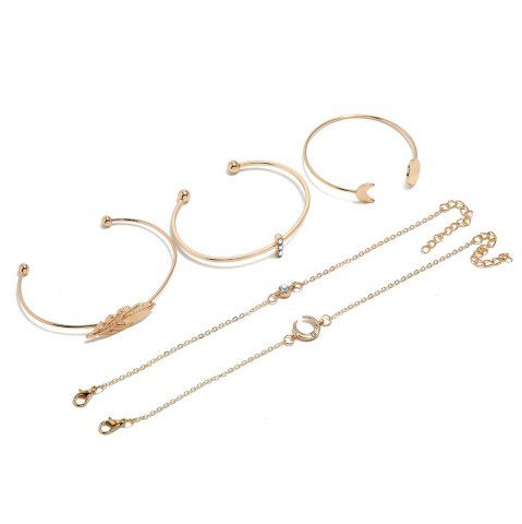 5 Pièces Bracelets à Feuille Lune Soleil avec Strass - D'or - Or