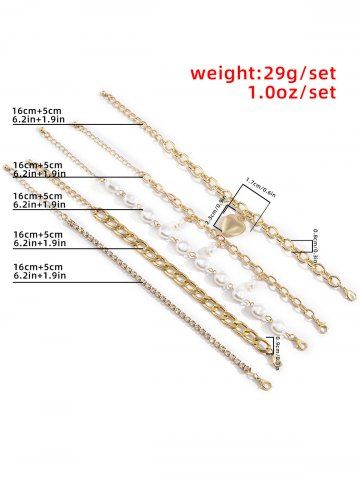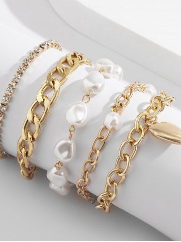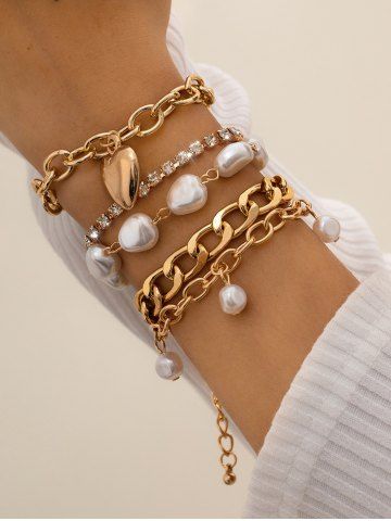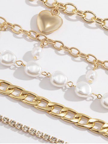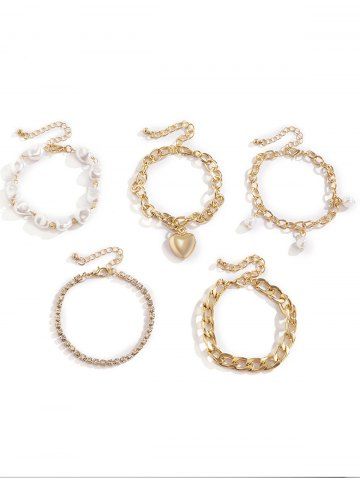 Ensemble de Bracelets Baroque Cœur Perlé en Forme de Baroque 5 Pièces - D'or - Or