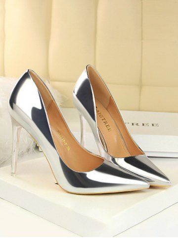 Escarpins à Bouts Pointus et Talons Aiguilles Métallisés - Argent - Argent