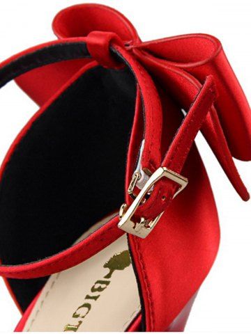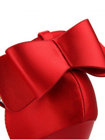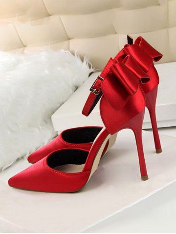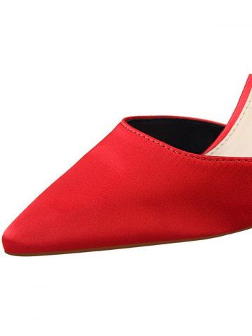 Escarpins Soyeux Détaillé Bout Pointu à Talon Haut en Satin - Rouge - Rouge