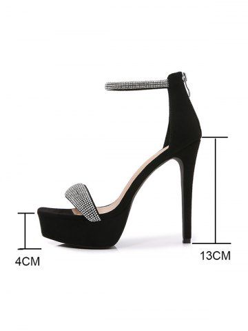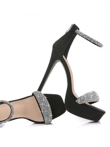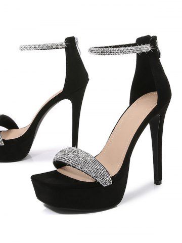 Sandales à Talons Plate-forme avec Fermeture Éclair Arrière Ornées de Strass - Noir - Noir