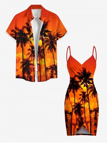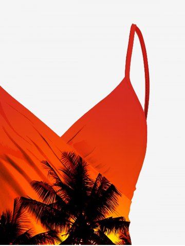 Cache-maillot de plage convertible grande taille à imprimé cocotiers, coucher de soleil et crépuscule hawaïens - Orange Foncé - 6x