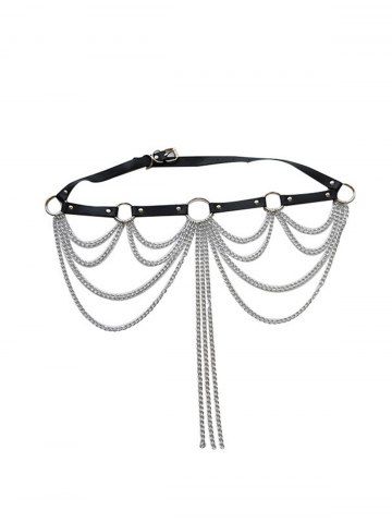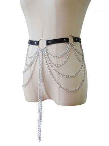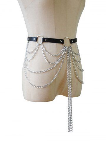 Ceinture de Taille en Simili Cuir à Plusieurs Branches avec Boucle et Chaîne Style Punk - Noir - Noir