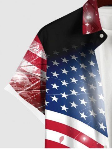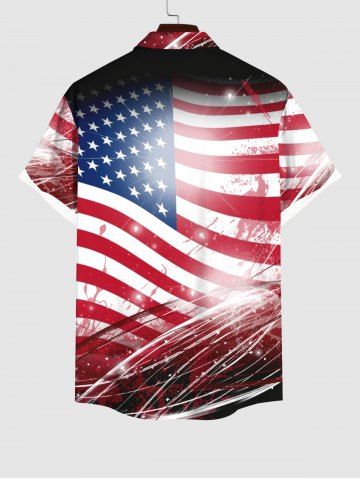 Patriotic Men > Chemise 3D Drapeau Américain Imprimé Peinture Eclaboussée Grande Taille avec Poche à Paillettes