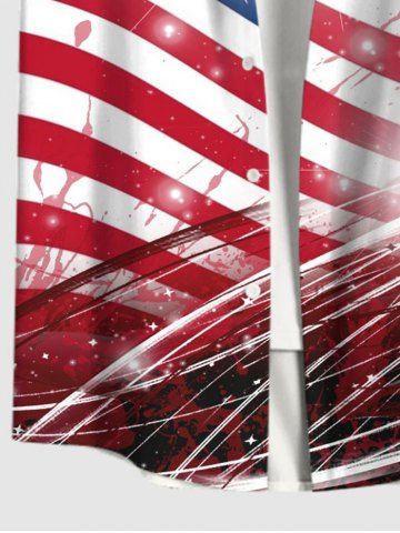 Chemise 3D Drapeau Américain Imprimé Peinture Eclaboussée Grande Taille avec Poche à Paillettes - Multi-a - L