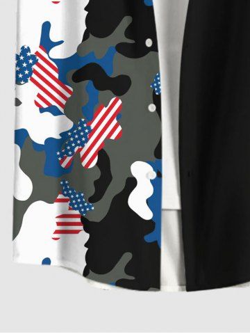 Chemise Camouflage Drapeau Américain Imprimé en Blocs de Couleurs avec Poche de Grande Taille - Noir - Noir