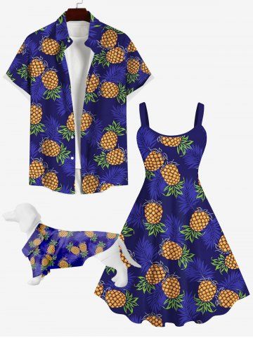 Dog Shirts> Chemise Décontractée Feuilles de Noix de Coco et Ananas Imprimés avec Bouton