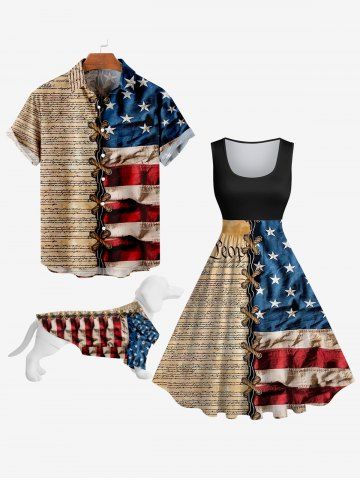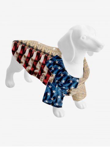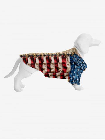Dog Shirts > Chemise Drapeau Américain 3D Journal Imprimé à Col Relevé