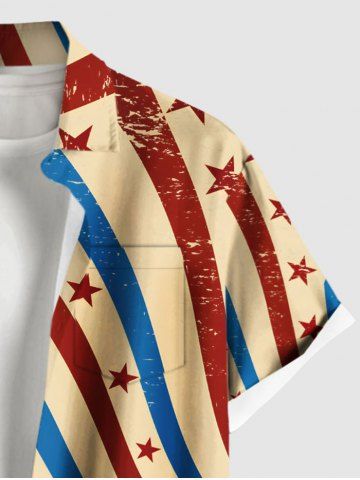 Patriotic Men> Chemise grande taille à boutons et poches, imprimé drapeau américain patriotique, pour homme