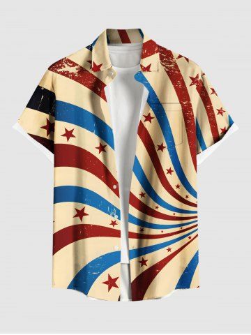 Chemise grande taille à boutons et poches, imprimé drapeau américain patriotique, pour homme - Multi-a - S