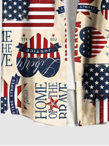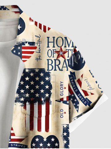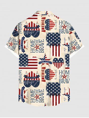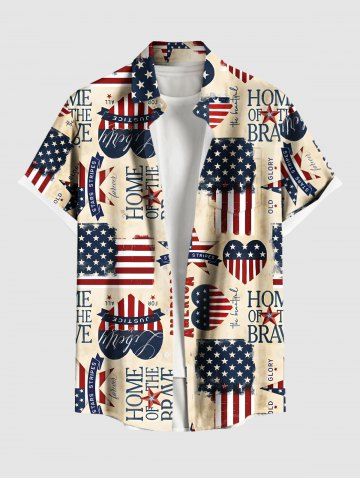 Chemise grande taille à imprimé drapeau américain patriotique et lettres en forme de cœur hawaïen avec poche boutonnée pour homme - Café Lumière - 4xl