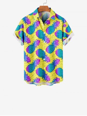 Chemise Hawaïenne à Imprimé à Pois en Dégradé de Couleurs et Ananas avec Poche pour Enfants - Jaune - Jaune