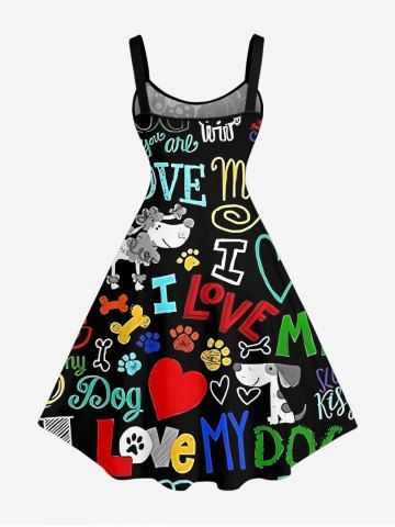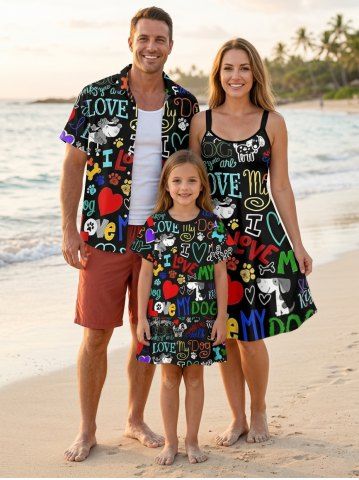 Colorful Letters Dog Heart Paw Print Plus Size Matching Hawaii Beach Outfit For Family - Noir - Noir